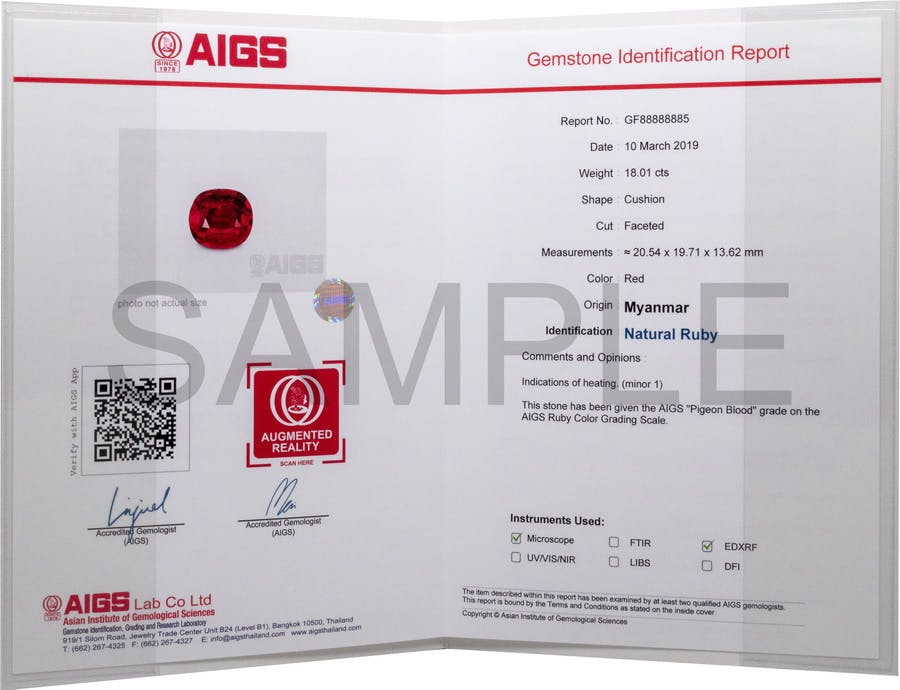 Asian Institute of Gemological Science is a leading Thailand based lab famous of colored gemstone identification. AIGS: Gemstone Testing Laboratory and Education Center Located in the heart of Bangkok's gem and jewelry district, AIGS has been a world-renowned gemological education center and gemstone testing laboratory for almost forty years.