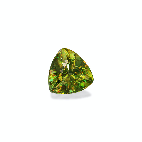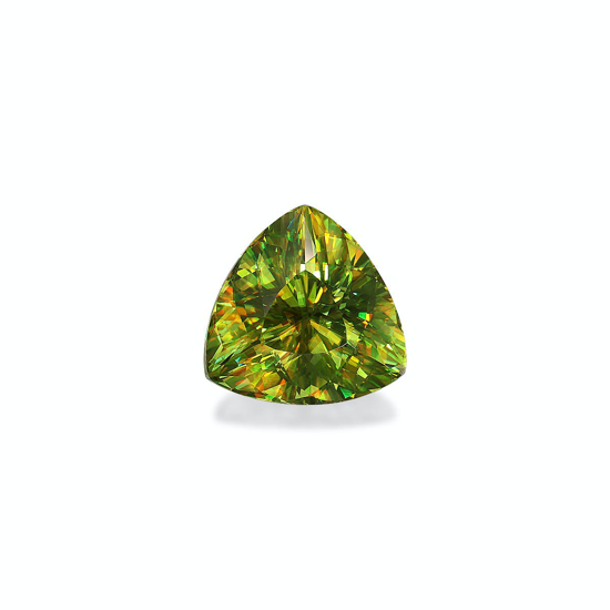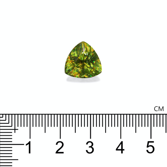 Natural Loose Green Sphene weighing 7.81ct & measuring 12.33 x 12.27 x 8.02 mm from Madagascar. The Sphene is cut in an ideal Trilliant shape which compliments the gemstone very well. Certificate also available. Sphene gemstones are beautiful for all occasions and can be worn for many benefits as well. Please dont forget to check our Gem Journal for more updates on latest trends from the Gemstone and Jewelry Industry