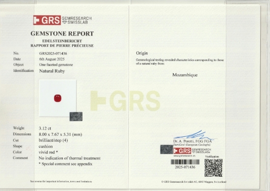 Loose Mozambique Ruby Gemstone GRS Certified Mozambique Ruby