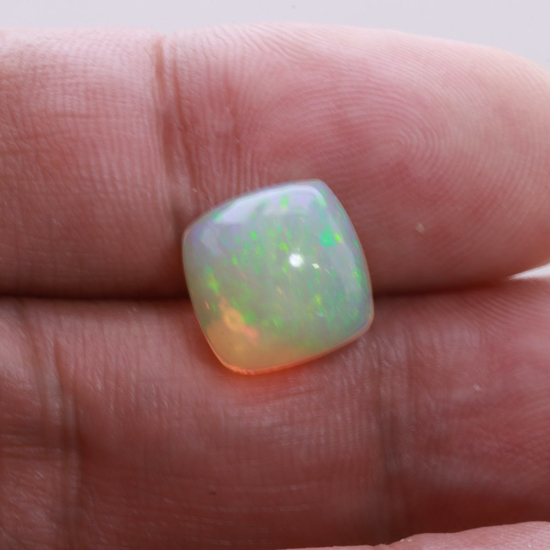 Natural Loose White Ethiopian Opal weighing 4.11ct & measuring 11.17 x 11.09 x 6.65 mm from Ethiopia. The Ethiopian Opal is cut in an ideal Cushion shape which compliments the gemstone very well. Certificate also available. Ethiopian Opal gemstones are beautiful for all occasions and can be worn for many benefits as well. Please dont forget to check our Gem Journal for more updates on latest trends from the Gemstone and Jewelry Industry